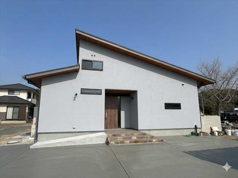 片流れ屋根のシンプルな平屋です。